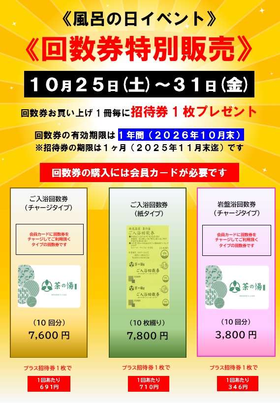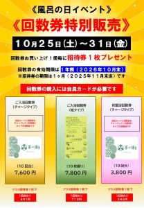 風呂の日イベント回数券お得販売 10/25(土)~31(金)