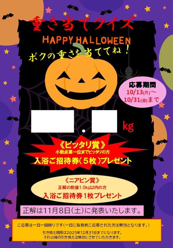 かぼちゃの重さ当てクイズ 2025 10/22 イベント ニュース・お知らせ イベント ニュース・お知らせ この記事が気に入ったら いいねしてね! よかったらシェアしてね! URLをコピーしました! URLをコピーしました!