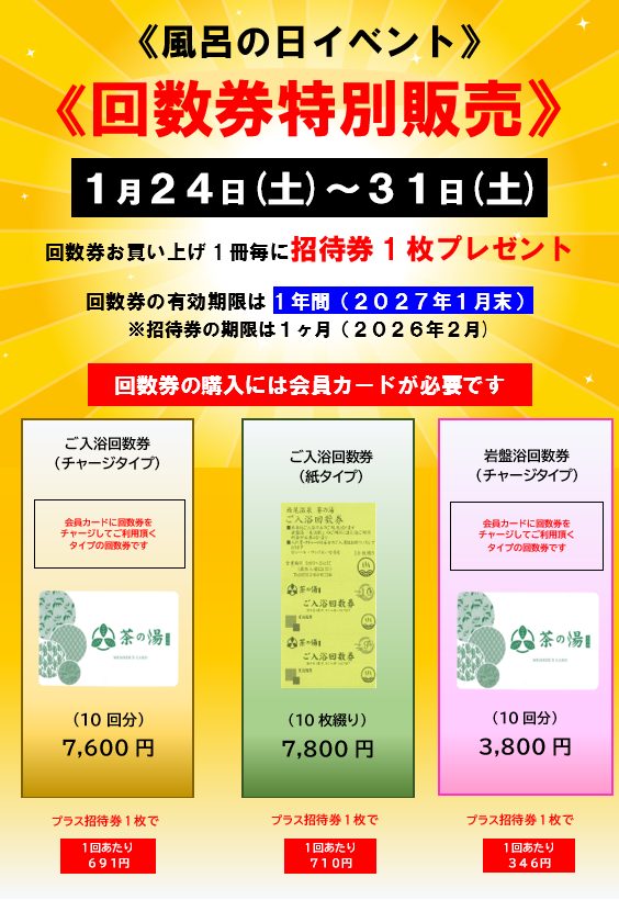 風呂の日イベント回数券お得販売 1/24(土)~31(土)