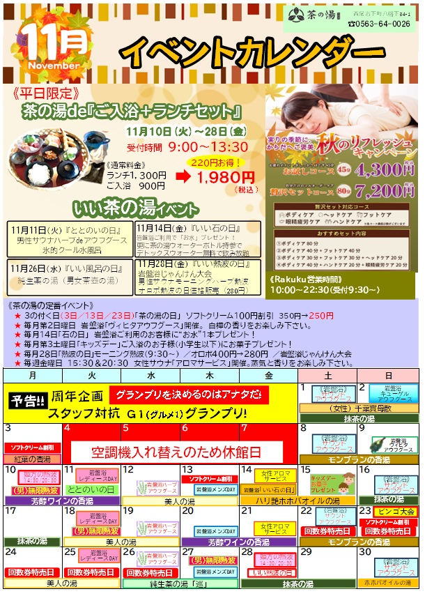 11月平日限定「茶の湯deご入浴+ランチセット」
